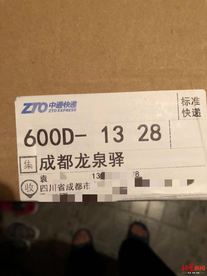 ↑记者收到的中通的快递,信息面单上都完整显示了收件人的姓名、电话和详细地址。