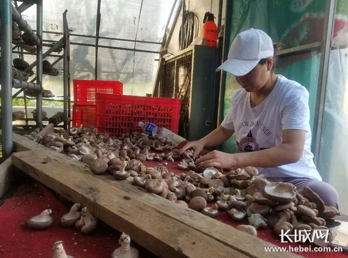 村民在河口易地扶贫搬迁安置区的香菇大棚里分拣香菇。记者 张秀娟 摄