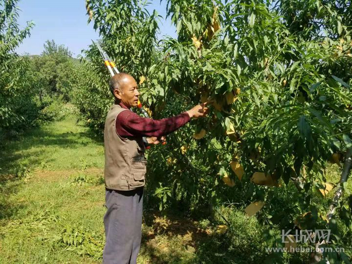 搬出深山沟,看到新希望,一些搬迁户也主动寻找致富门路。在距离石滩地安置区不远的一片桃园里,一个个压弯枝头的映霜红桃丰盈饱满,贫困户耿建生领着助手耿鹏亮在剪有病虫的枝叶。“我懂些果树种植技术,搬到这里后就从明强林果种植专业合作社承包了果园的管理工作,包括剪枝、除草、打药、浇水、施肥等,每年给我管理费20万元。”