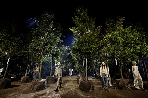 法国克里斯汀-迪奥公司9月24日在一个绿树环绕的赛马场举办服装秀。(路透社)
