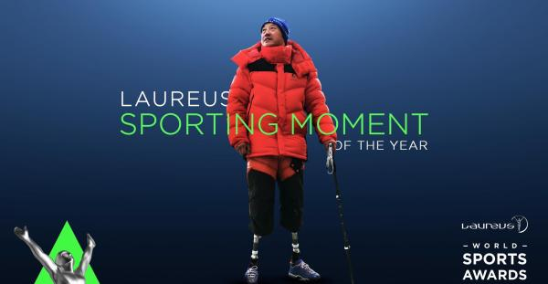 夏伯渝戴着义肢成功登顶珠峰,被授予劳伦斯“年度最佳体育时刻奖”。