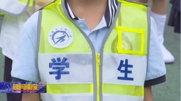 在交通安全服的肩部,分别印有学生的名字和所在学校的校徽。这些设计不仅可以起到警示车辆驾驶员的效果,还可以让同学们提高遵守交通法规的自觉性。