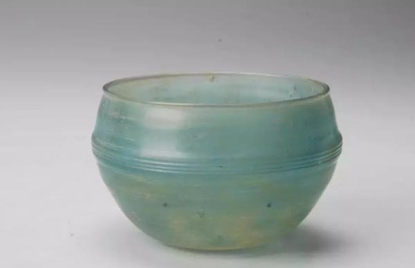 淡青色玻璃杯(一级文物) 西汉(公元前206—公元25年) 1987年合浦县文昌塔70号墓出土 广西壮族自治区博物馆藏 中等钙铝亚类钾玻璃,判断产自印度。