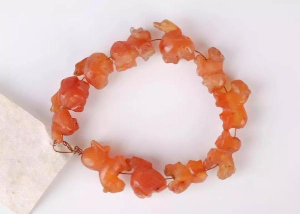 动物形肉红石髓串饰 西汉(公元前206—公元25年) 1975年合浦县环城堂排2号墓出土 广西壮族自治区博物馆藏