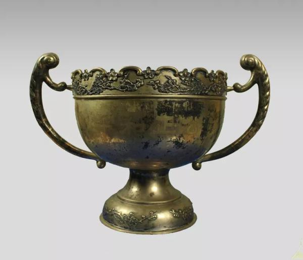 “公正和平”银爵 、明代蓝印花布被面、胭脂红地粉彩折枝石榴花卉纹瓷碗都是“上海县七百年”常设展厅的重要展品。“公正和平”银爵 腹部外侧镌有“公正和平”四字,在其左右分别镌有“法总领事韦礼德君荣归纪念”、“上海总商会、上海县商会敬赠,民国十三年十一月十七日”两段小字。它是1924年,上海总商会和上海县商会赠予时任法国驻沪总领事的韦礼德的送别礼物。