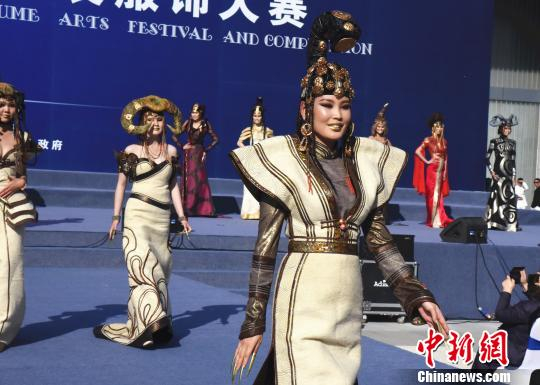 中新网乌兰察布9月26日电 (记者 张玮)26日,第十六届蒙古族服装服饰艺术节在内蒙古自治区乌兰察布市开幕,国内外68支代表队的近2000套民族服饰上演霓裳大秀。