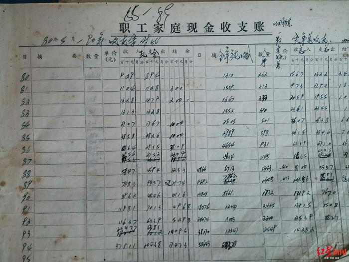 这些年,易传祥写了10余本“家庭账本”,每一本账本的封面上,他都细心标上了记录的起止时间,里面的内容都是按照“时间、摘要、数量、单价、收入、支出、结余 ”这几项来记录,一张张发黄的纸页上不仅记录着家庭的收支,也能从中看到改革开放给这个家庭带来的巨大变化。