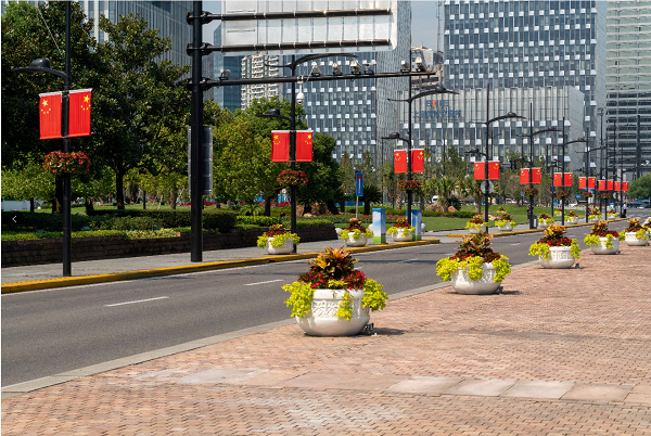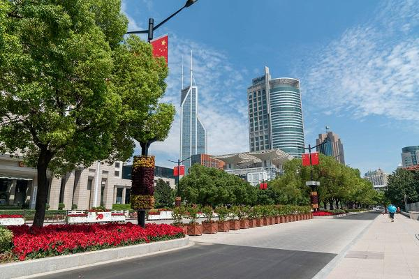 用“国旗色”打造“立体花城” 申城街头繁花似锦迎国庆