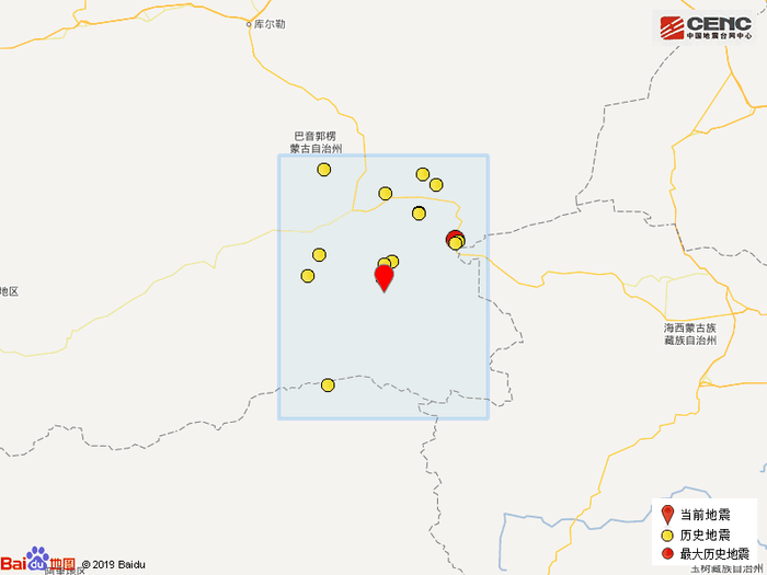 历史地震:根据中国地震台网速报目录,震中周边200公里内近5年来发生3级以上地震共17次,最大地震是2016年12月14日在新疆巴音郭楞州若羌县发生的5.0级地震(距离本次震中141公里),历史地震分布如图。