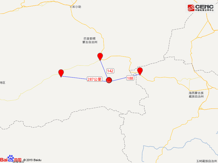 周边县城:震中距若羌县142公里、距青海茫崖市188公里、距且末县287公里,距巴音郭楞蒙古自治州492公里,距乌鲁木齐市670公里。