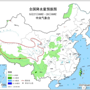 9月27日08时至28日08时,内蒙古东北部、山西、陕西、河南西部、四川中西部和南部、云南、西藏南部和台湾岛等地的部分地区有小到中雨,台湾岛东部局地有大雨或暴雨。新疆西部有5~6级风,山口风力7~8级。