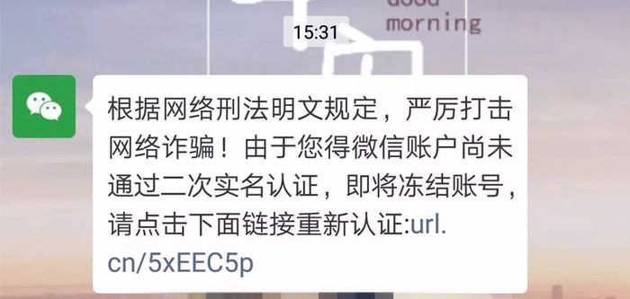 如果你的微信或支付宝收到[你的微信/支付宝账户尚未二次实名验证],千万不要点链接进去,二次实名认证是假,骗子想骗钱是真!