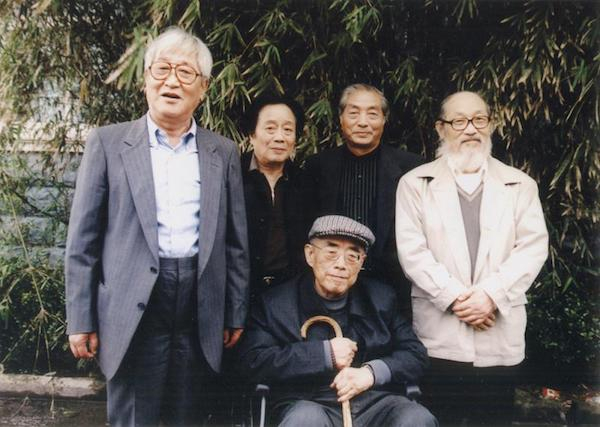 “五老”三十年后在金山农民画村再聚首,前排程十发,后排右起刘旦宅、汪观清、郑家声、韩和平