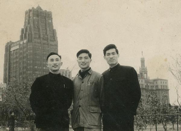 1958年,汪观清(中)与贺友直(左)、韩敏(右)在人民公园。