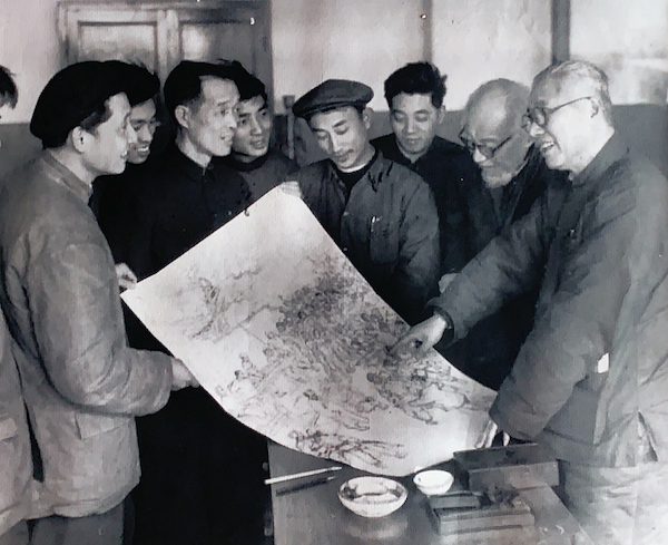 当时汪观清28岁,这集中创作的几个月被他认为是自己创作的黄金时代。“那时年富力强,有问题时常可以请教老先生,而且各家单位集中一起创作,大家互相学习很有朝气。”所以在与应野平合作《万水千山》时,精益求精画了好多稿,直到两人都觉得满意为止。应野平还在色彩上也进行了革新,淡墨中蘸一些石青、石绿一起渲染。