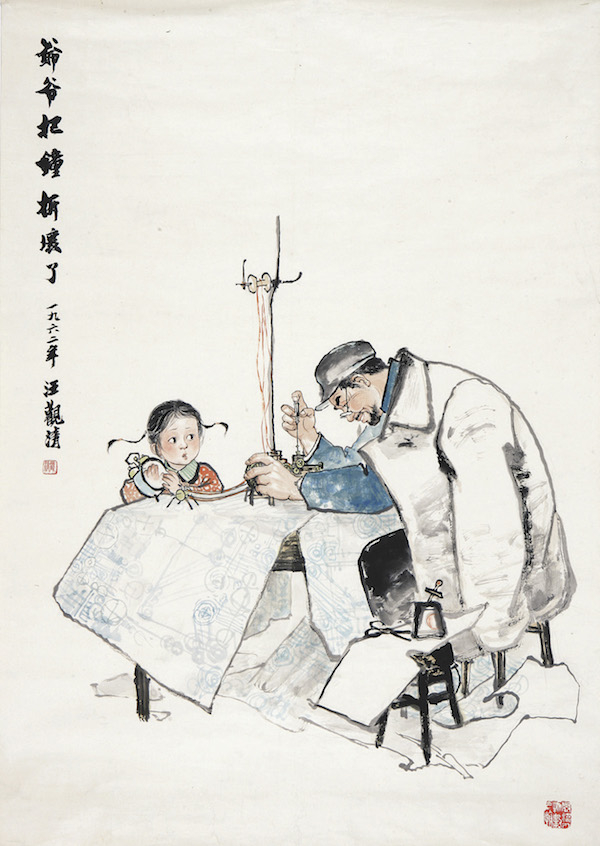 1959年,汪观清以反映上海工人技术革新为主题创作的《爷爷把钟拆坏了》,参加全国美展,后被中国美术馆收藏