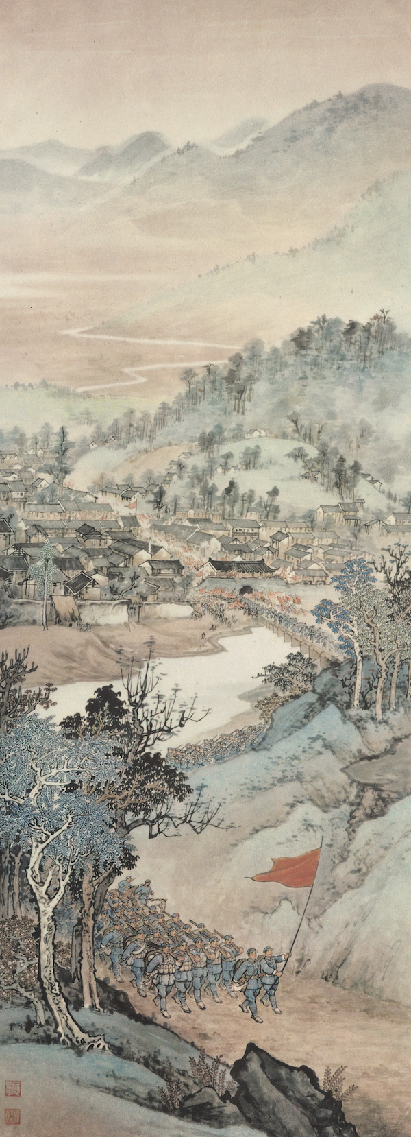 汪观清与应野平合作的国画八屏条《万水千山》之“遵义”(1959年)