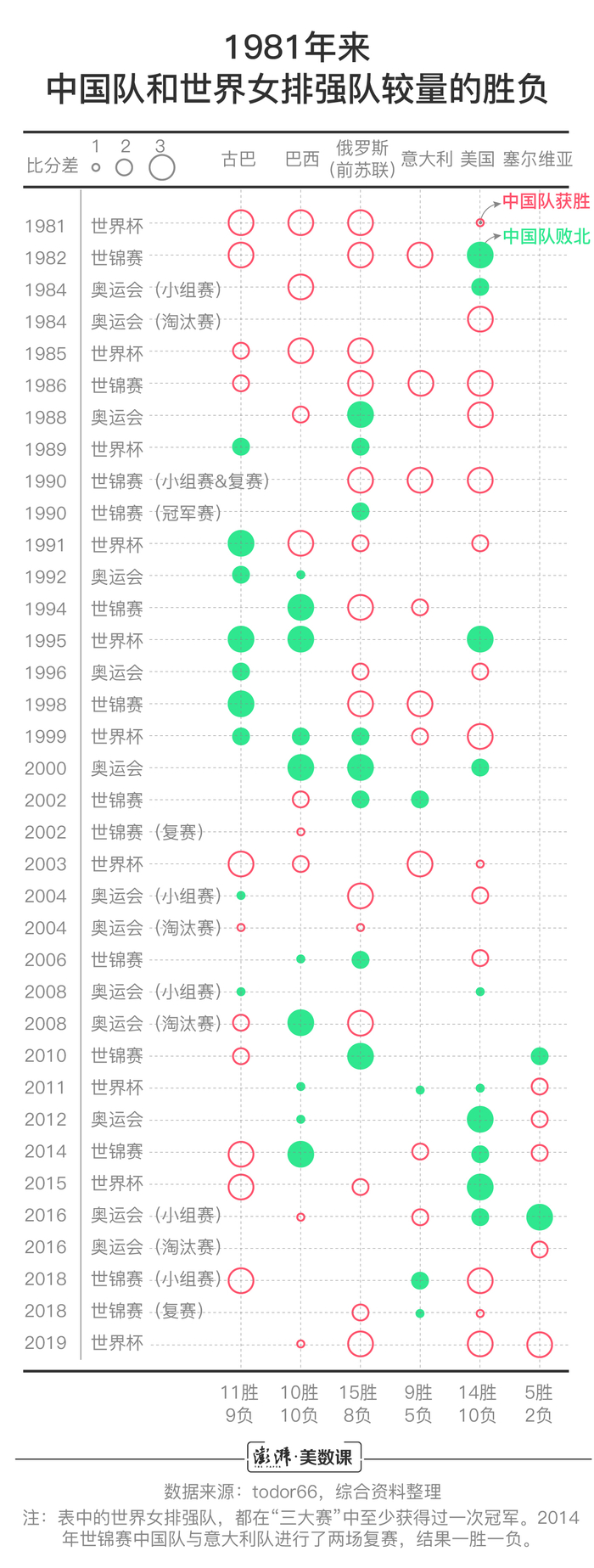 即使现在是女排历史表现最好的时段之一,近十年内,中国队大赛中面对传统对手如巴西、美国等队,仍也有输球的时候。