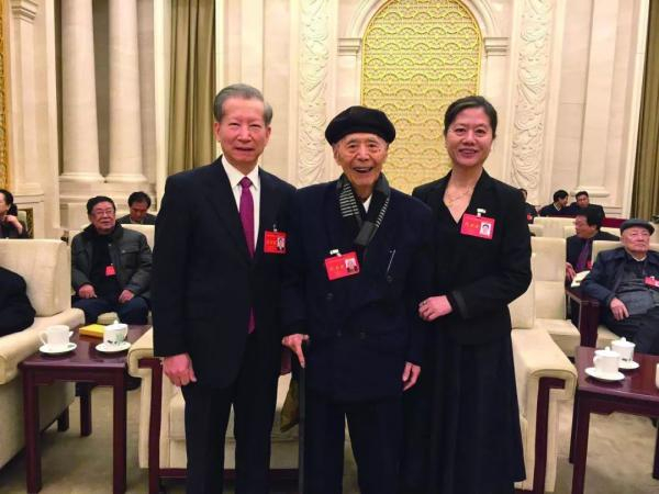 钱谷融(中)于2016年参加第九次作代会,左一为金炳华、右一为王安忆