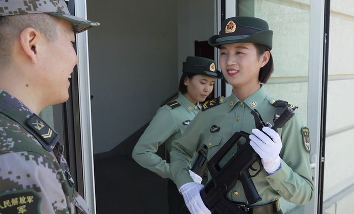 女兵接受检阅丈夫承担后勤工作 网友:神仙爱情