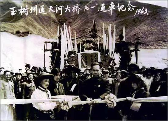据青海日报1963年7月30日报道:“长江上游第一桥—— 玉树通天河大桥,最近已经建成通车。这座桥是西宁通往玉树藏族自治州的咽喉,也是目前我省最大的一座现代化公路桥梁。通天河大桥的建成,是我省交通建设事业上的又一重大成就。由于大桥地处高原,夏秋河水湍急,只能利用冬季枯水季节施工。省公路局建桥职工们以艰苦奋斗的精神,在零下三十度的气温下,坚持冬季昼夜作业。他们克服了机具设备简陋、技工不足和气候严寒等种种困难,发挥了创造性的劳动,终于较原计划提前三个月通车。”