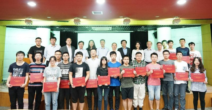 毛军发院士、苏跃增教授、应陵副所长和张文总裁共同为首批吴班20位同学颁发录取证书。首届吴文俊博士班第一批共录取20名学生,包括上海交通大学ACM班,中科大少年班等学生,40%为本科期间所在年级前5名,入学前人均发表CCF A类论文0.65篇。