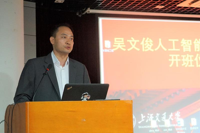 随后,杨小康介绍了吴班成立情况和人工智能研究院(以下简称“研究院”)在人工智能方面已取得的工作进展。他重温了在2018年世界人工智能大会期间与吴文俊先生之子吴天骄一起为“吴文俊人工智能荣誉博士班”授旗时的使命感,希望吴班弘扬吴文俊的科学精神。同时,他指出研究院作为学校人工智能研究的跨学科平台,统筹校内人工智能领域科研,正在形成更大规模的研究团队,研究院也是学校人工智能科研成果转化与对外交流的统一出口,希望吴班能充分利用好人工智能研究院平台,在学术研究上大展拳脚。