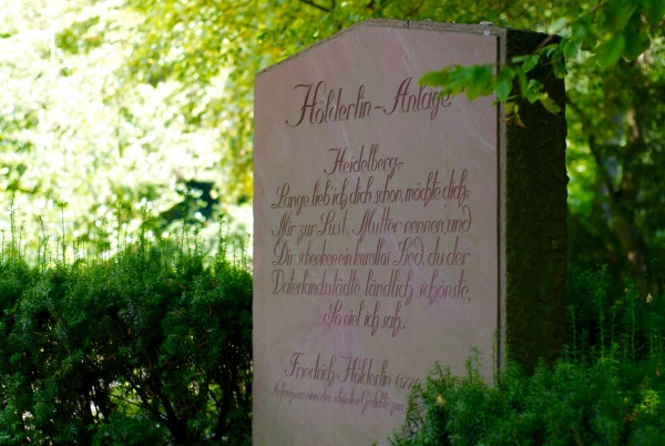 小径半途的哲学家小花园里看到了荷尔德林的纪念碑,上面刻着他《海德堡》诗句: