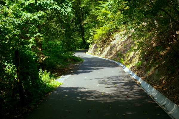 从山上俯瞰,海德堡古桥横跨在内卡河之上。另一边密林之中则是圣灵山,上山的路非常陡峭,一路斑驳树影,这是一条为善思静想的人而存在的路,绿茵如盖,阅读自然,寻找上帝,冠以“哲学之道”真是名副其实。