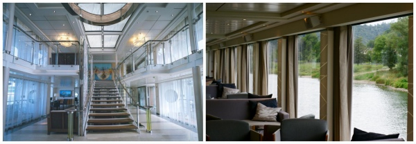船内敞亮的玻璃梯和观景廊