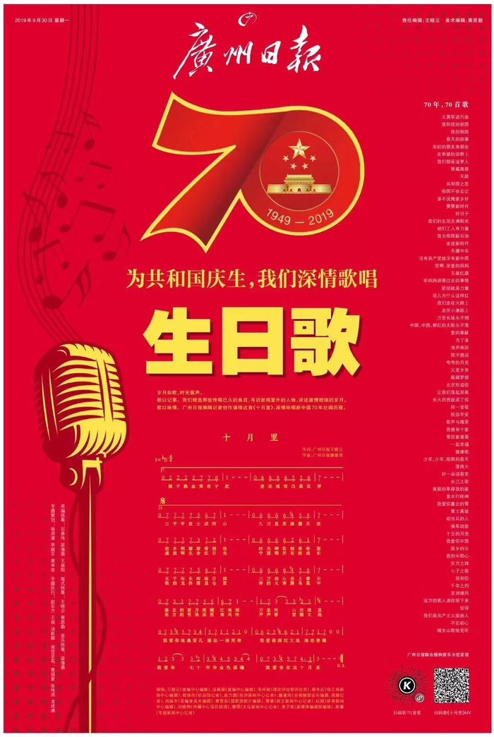作词作曲演唱制作原创MV《十月里》,为共和国献上一首生日歌献上来自广州日报人的祝福↓↓↓广州日报精心制作的《生日歌》大型全媒体特刊今日重磅出街!