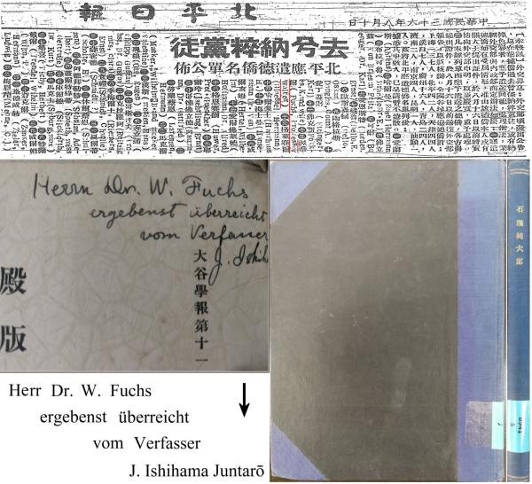 03《殿版蒙文大藏经考》(《大谷学报》第十一卷第三号 拔刷,1931。封面右上角有石滨纯太郎钢笔字迹:Herr Dr. W. Fuchs,ergebenst überreicht vom Verfasser. J. Ishihama Juntarō.,意为:(To) Mr. Dr. W. Wuchs, most sincerely presented by the author, J. Ishihama Juntarō.