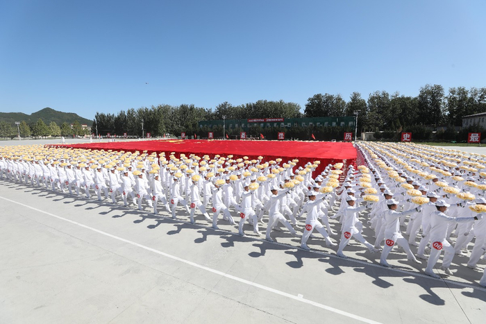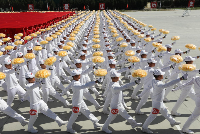 选人只是第一步,下一步便是打基础。国旗下方是530名执旗手,其余队员则是国旗外围的执花手,两种队员的动作和训练各不相同。