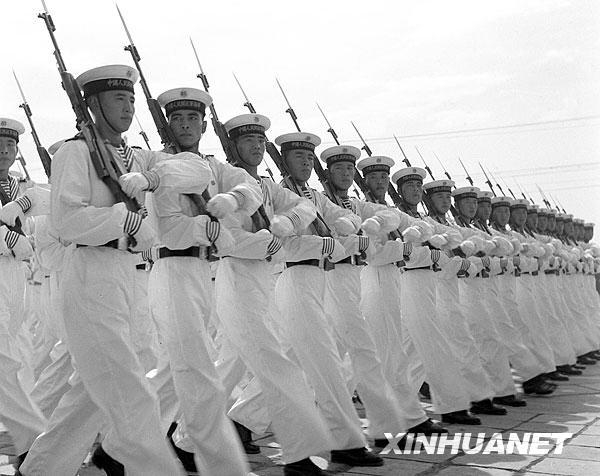 1984年10月1日,海军方阵通过天安门广场。图据新华社