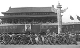 1957年10月1日,中国人民解放军步兵方队从天安门广场通过。图据新华社