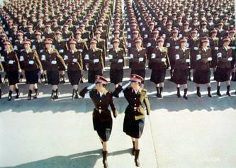 1984年10月1日,女卫生兵方阵接受检阅。这是国庆阅兵式上首次出现女兵方阵。图据新华社