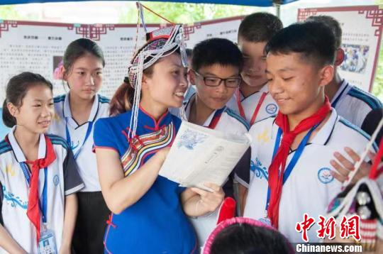 畲族山歌传人蓝景芬在民族中学传唱畲族山歌 李肃人 摄