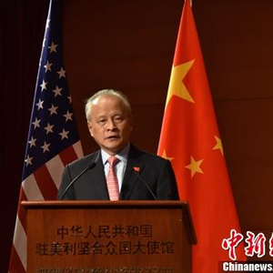 图为中国驻美大使崔天凯致辞。中新社记者 沙晗汀 摄