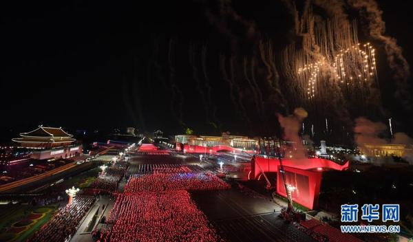 国庆联欢活动焰火表演 图片来源于新华社