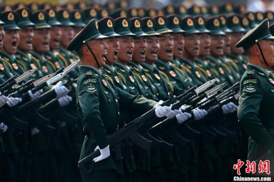 10月1日上午,庆祝中华人民共和国成立70周年大会在北京天安门广场隆重举行。图为受阅的陆军方队。中新社记者 富田 摄