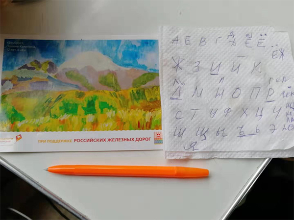 作为中文爱好者,梅花自然向我讨教了不少新潮词汇。而我则请她展现一下教师的职业技能,教我拼读俄语。脱胎于西里尔字母表,俄语33个字母和拉丁字母几乎是毫无联系,更迷惑的是手写体和印刷体差异巨大,梅花手写给我的字母,我必须要在她的指引下一个一个照着明信片上的印刷体去对号入座。