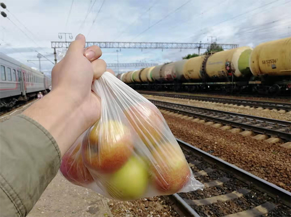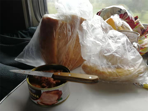 在列车上,俄罗斯人经常邀请别人一同喝红茶,吃列巴,聊家常。有了梅花的帮助,我也加入了他们的小桌板社交,虽然听不懂他们的俄语对话,但好在有梅花时不时地帮忙翻译几句。