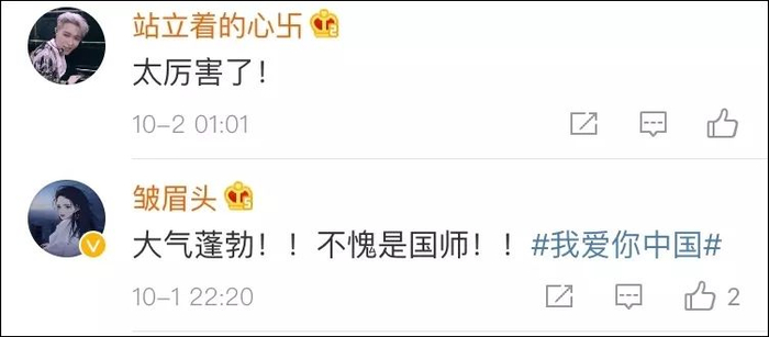 10月1日晚,北京天安门前的国庆70周年联欢活动上,七彩斑斓的焰火照亮夜空,拼出“70”“人民万岁”等形状,令人大呼过瘾。