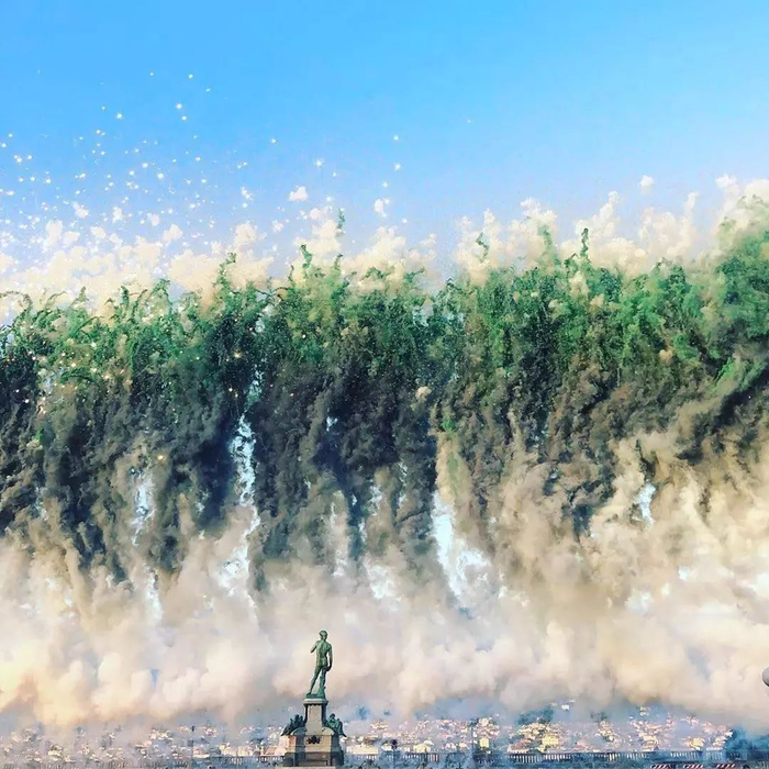 蔡国强的艺术表现横跨绘画、装置、录像等数种媒材,最令人印象深刻的,还得数他的爆破艺术。不信?我们来看一看他的代表作。去年11月,意大利佛罗伦萨米开朗基罗广场,50000 余发定制烟花在短短约 10 分钟内,相继升空绽放。