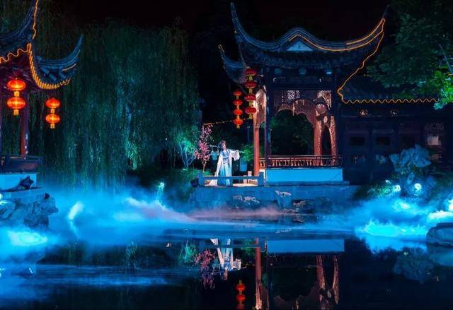 暮色降临,精巧雅致的瞻园华丽变身,亭台楼阁金碧辉煌,奇峰异石巍峨雄浑;飞瀑与鸣泉相和,月影与霓裳共舞……“金陵寻梦·夜瞻园”将亭台楼阁巧妙地融入戏曲演出中,经典名著《红楼梦》被360度实景还原,传统戏曲、器乐、多媒体,结合瞻园廊、亭、厅的园林空间,为游客营造出多层次的文化体验。