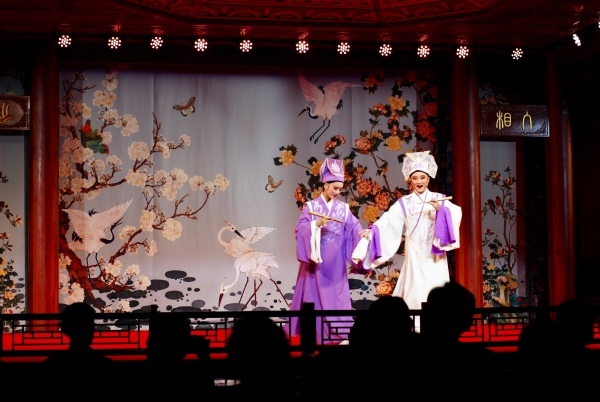 每天晚上,越剧小镇艺术团的年轻演员们都带来“越剧专场”,演绎《红楼梦·读西厢·葬花》、新版《梁祝·十八相送》、《孔雀东南飞·雀喻》等经典折子戏。