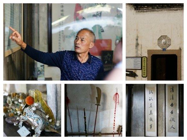 走出戏台,沿着青石台阶,就到了著名的“八卦台门”。这里是当年第一副女子科班的摇篮,如今也建有全国第一家村级戏曲博物馆——