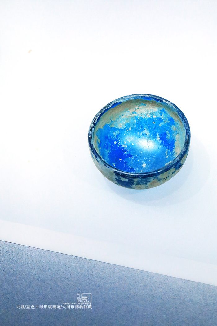 蓝色半球形玻璃泡(北魏),大同市博物馆收藏