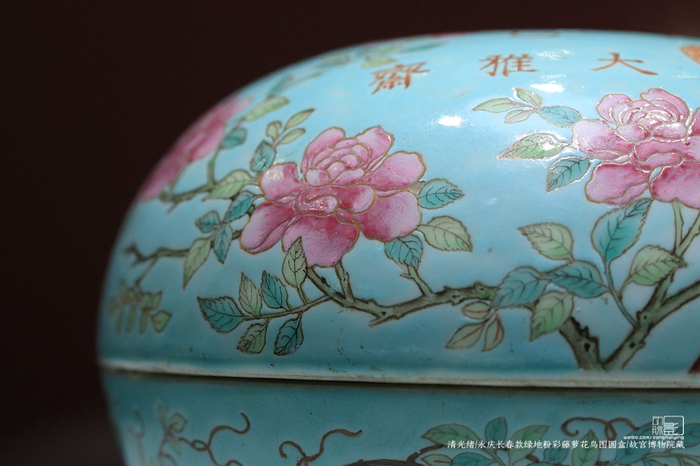 永庆长春款绿地粉彩藤萝花鸟图圆盒(清光绪),故宫博物院