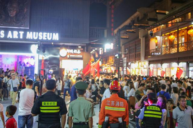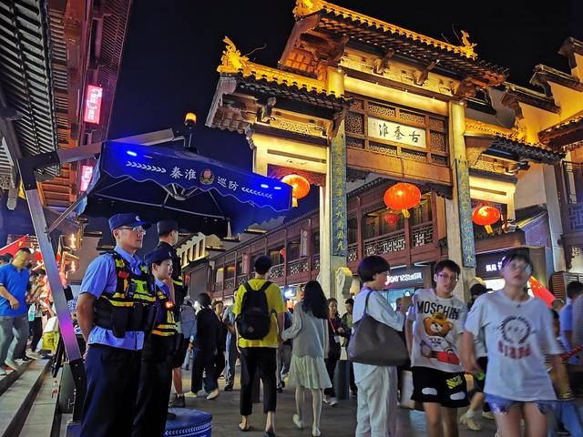 今年国庆期间,作为全国唯一的开放式5A级景区的夫子庙景区在10月1日提前迎来了人流高峰,当日夫子庙和老门东人流量达到40万人/次。为了确保广大市民游客欢度国庆,南京市公安局秦淮分局在重点区域加强巡逻防控和值守管控力量投入,每日安排400余名民警和辅警人员安保执勤工作,警方还参照秦淮灯会安保标准,在景区重点部位设置11个单兵值守点,引入200名武警安保力量,由特警、消防和武警共同组成应急处突组,第一时间处置突发状况,维护景区秩序。在10月2日和3日的人流高峰期间,警方在热力图检测系统等信息化平台的监测提示下,第一时间在东西牌坊和文渊桥、文德桥启动单向通行模式,有效疏导人流,化解了因人员聚集而产生的安全隐患。